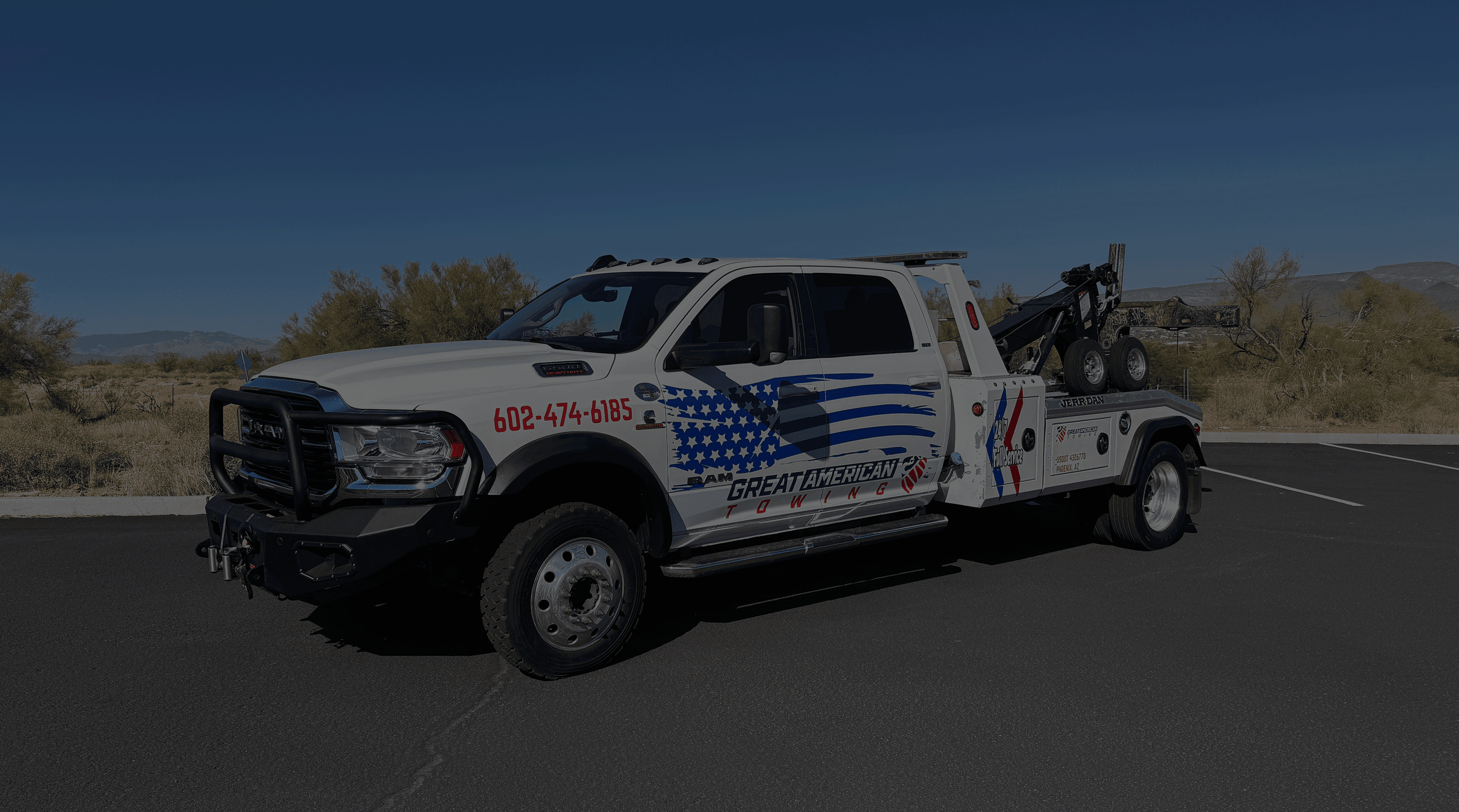Great American Towing is your go-to tow truck service when you’re stuck on the side of the road. We know that for our customers, being stuck or in need of help is a time sensitive thing, that’s why we are very specific about the area we service. Our tow trucks are located in North or West Phoenix, so you can find a tow truck near you. Whether you need a tow truck for an engine breakdown, flat tire, or some other roadside emergency, our team is here to help. We strive to provide fast and reliable services so that you can get back on the road quickly. Don’t hesitate to call Great American Towing for assistance. We’re available 24/7, so you can always count on us when you need a tow truck. We provide towing and roadside assistance service to: